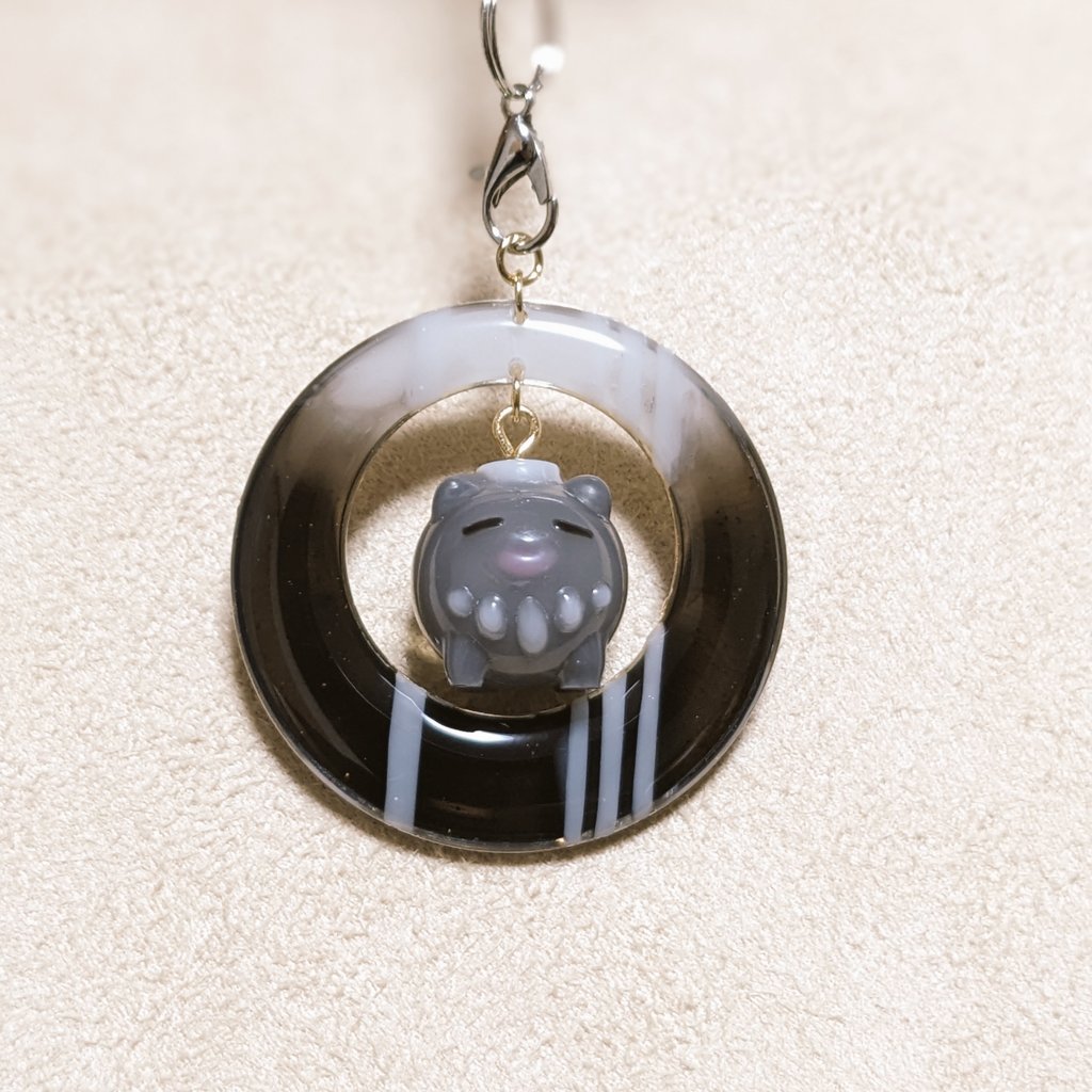 おかゆんイメージのオリジナル推しグッズ完成🍙 通常衣装をモチーフに黒と紫でシンプル目にしてみました! おにぎりゃーもひと晩中削って磨いて…地味に難産ではあった🥹 #絵かゆ
