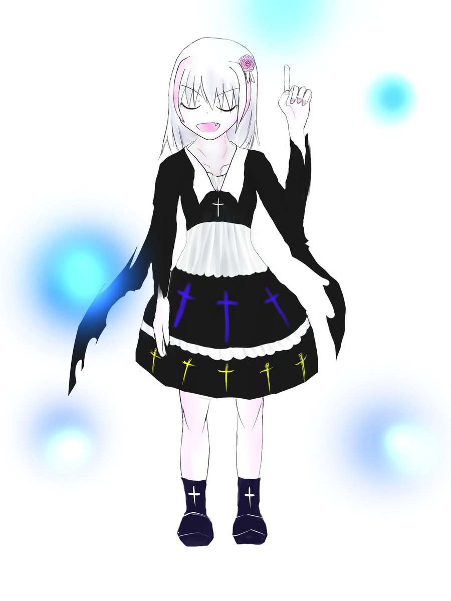 魔法少女化をしたのじゃ! セミロング、白(加算発光なのじゃ) 聖女服(?十字架つけるのじゃ) 水属性(青よ浮くのじゃ) 168cm(…) ロリ顔・声(?) バスト108(は?(怒)) #イラスト #オリキャラ #現人神ひかりん #絵描きさんと繋がりたい #オリキャラ愛の創作クラスタさんと繋がりたい #循環画 #美飾家