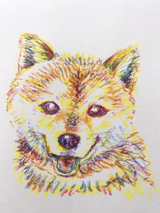 子供の極太クレヨン3色で描いた柴犬 #アナログイラスト #イラスト