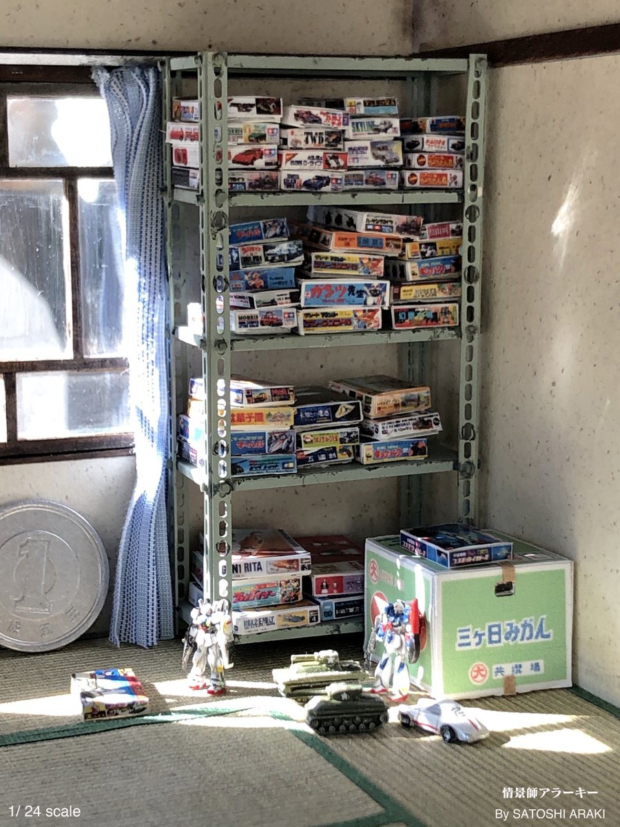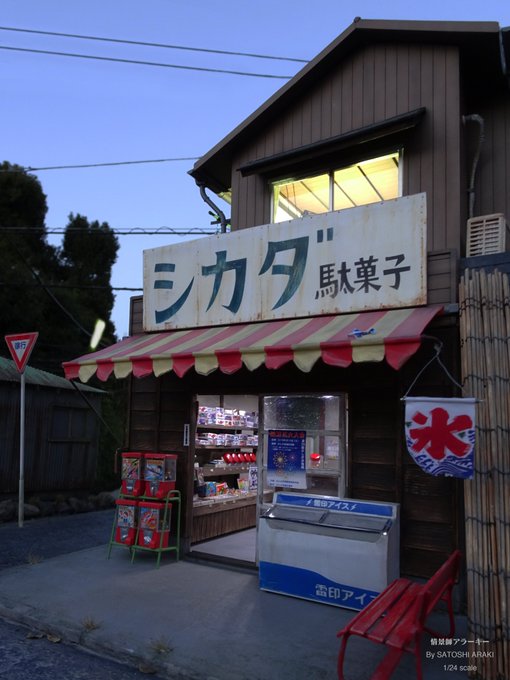 【いつかみたあの街角】 夏休みの残り日数が両手で数えられるようになり、賑やかだったあの店に静寂が戻ってきました。 駄菓子屋漫画「だがしかし」に登場するシカダ駄菓子。 実在したかのように作り込むのは情景師の仕事。 ↓詳細はジオラマ作家の仕事をまとめた私の著書にて… twitter.com/i/web/status/1…
