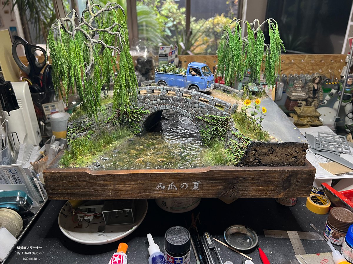 【ジオラマ修繕中】 熊本に現存する江戸時代築の石橋を題材にしたジオラマ「西瓜の夏」(2008年制作) 制作してから15年が経過して経年変化に耐えられず色褪せや分解崩壊などしてしまった素材を作り替えています。 当時は分からなかった素材の時間変化は長くジオラマを作っているとわかるもの。… twitter.com/i/web/status/1…