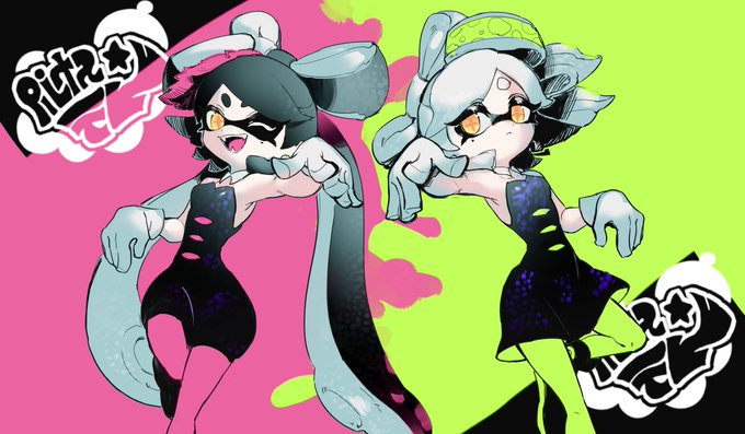 スプコレ賞 ぱるリーナさん&ぴゅあさんを描かせていただきました!🦑🧡🦑✨