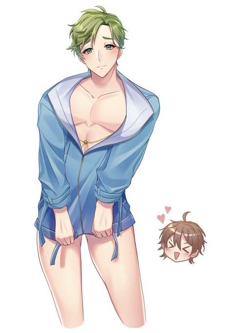 #ぬカニ_FA #NUカーニバル #NUcarnival #新世界狂歡 彼シャツ(?)をするも身長が同じなのでピチピチなオリビンのエイオリ