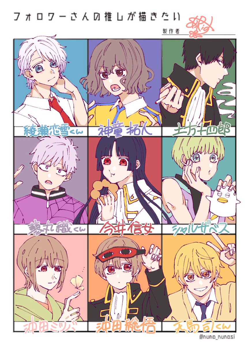 #フォロワーさんの推しを描きたい 描きました! 初めましてなキャラは君付けしてます 楽しかった〜〜〜🥰💕 ありがとうございました🙇♀️✨