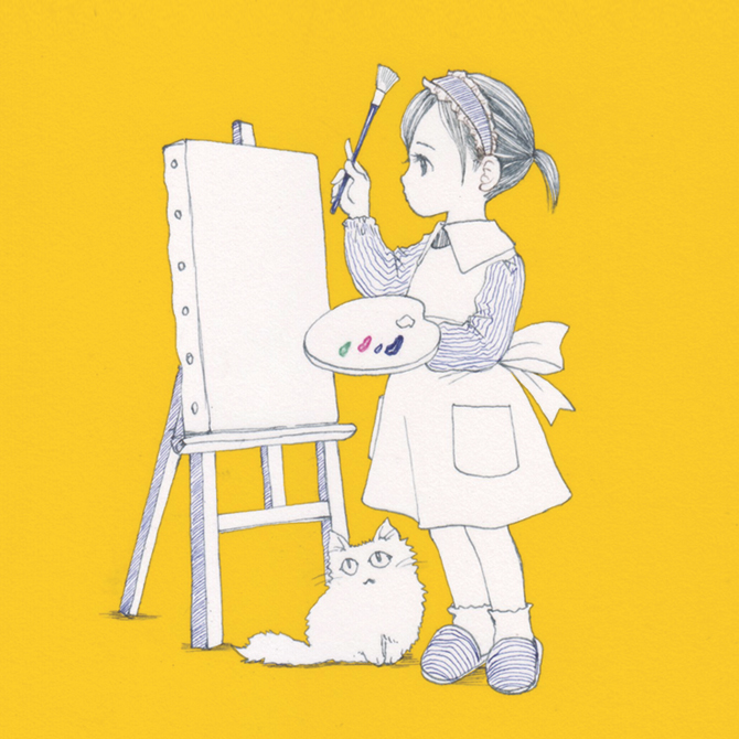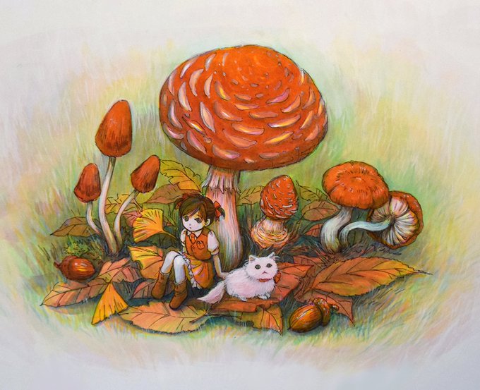 キノコと少女と猫 リキテックス透明色の重ね塗り+仕上げに白の不透明色をチョコッとだけ。 #art #illust #illustration #illustrator #アート #イラスト #イラストレーター #イラストレーション #アナログイラスト #アナログ絵 #watercolor #painting #水彩画 #アクリル画 #アクリル #リキテックス