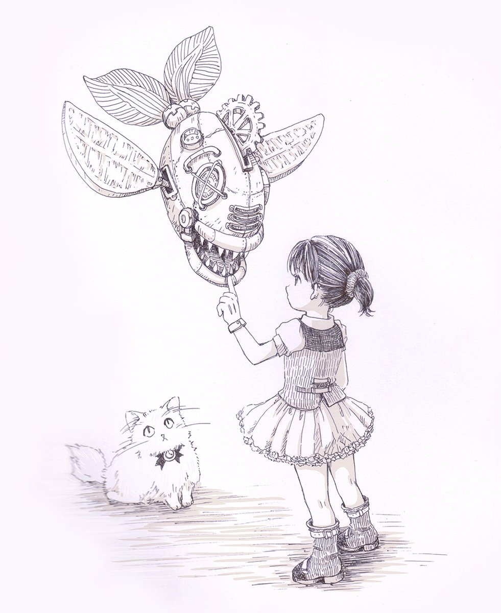 少女とモフモフのデブ猫。 小さいサイズのペン画です。 #art #illust #illustration #illustrator #アート #イラスト #イラストレーター #イラストレーション #アナログイラスト #アナログ絵 #ペン画