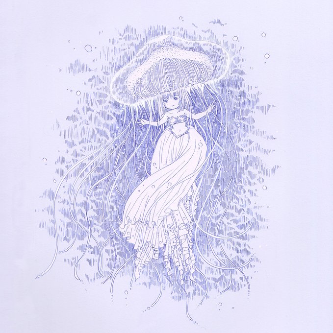 アンニュイなクラゲ。 ボールペンでチマチマと線を引く作業をすると癒されます。 #art #illust #illustration #illustrator #drawing #アート #イラスト #イラストレーター #イラストレーション #アナログイラスト #アナログ絵 #ペン画 #ボールペン #ボールペン画 #ballpointpen #ballpointpenart