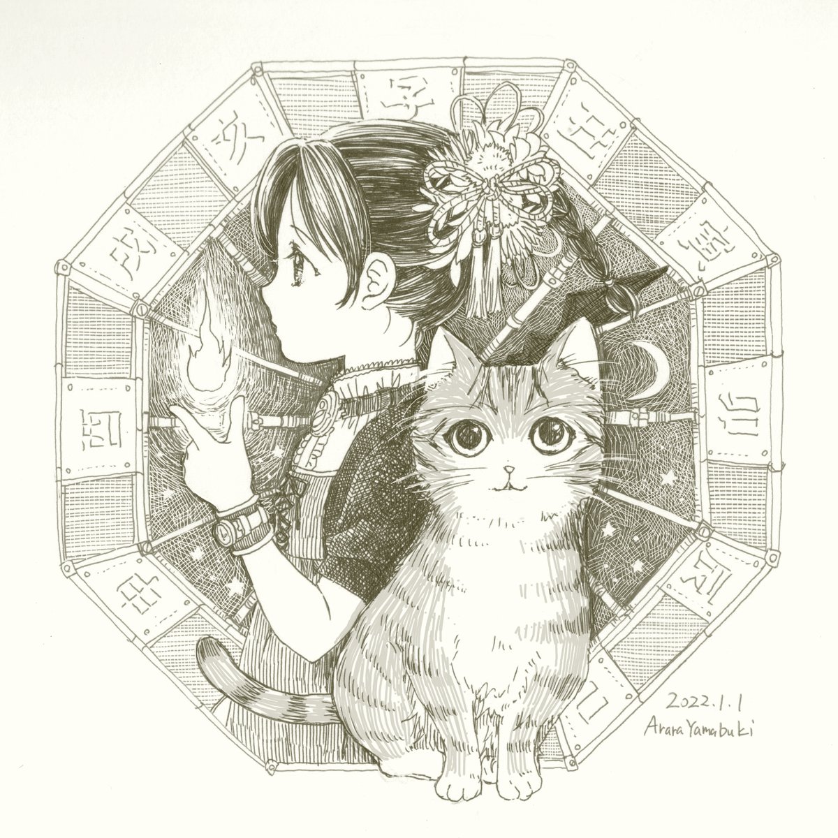 あけましておめでとうございます。 2022年1月1日 トラ猫と少女。 #art #illust #illustration #illustrator #drawing #アート #イラスト #イラストレーター #イラストレーション #アナログイラスト #アナログ絵 #ペン画 #ボールペン #ボールペン画 #ballpointpen #ballpointpenart