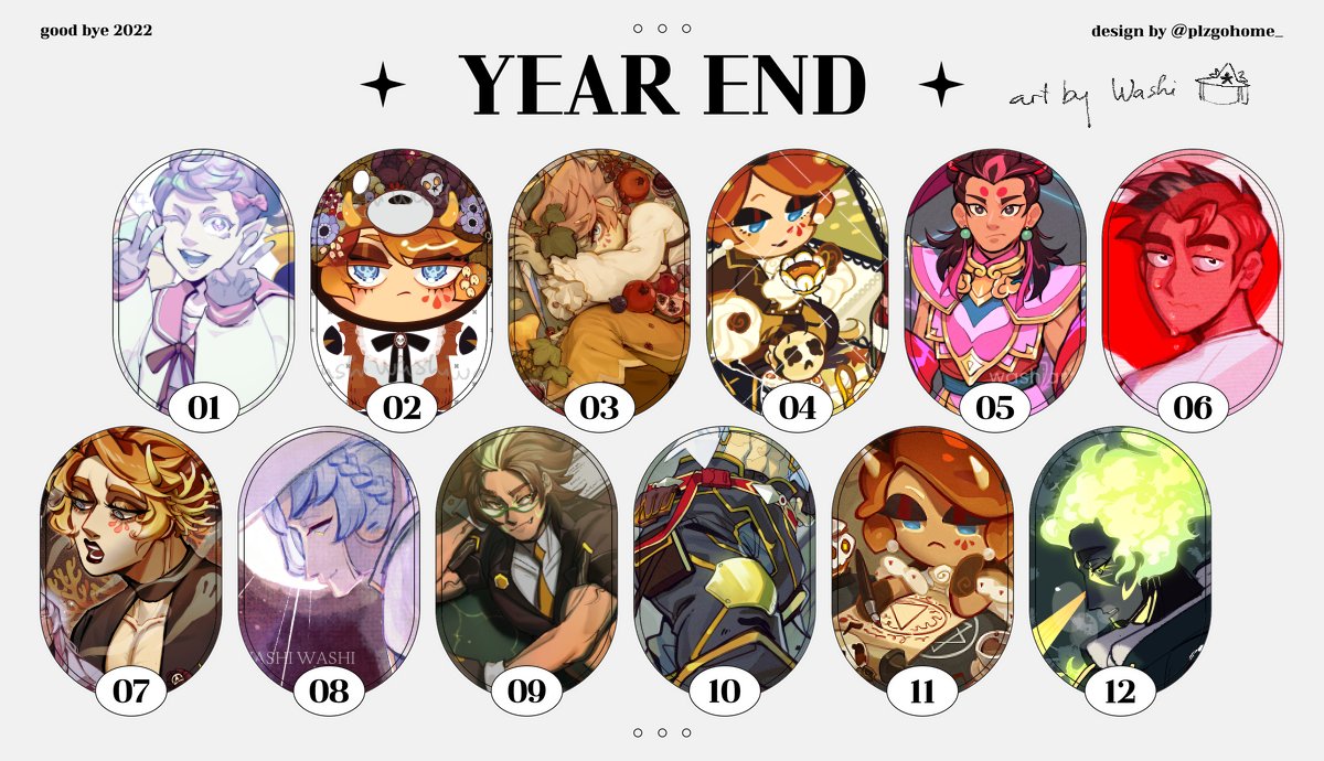 #Artsummary2022 Very late to the tag but be late than never! My art decreased as I started working but at least I draw my OCs for almost everyone month! And hope that I can do better in 2023~