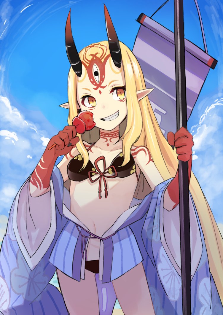 前に道場で描いた水着茨木ちゃんに加筆。もう冬。 #FGO