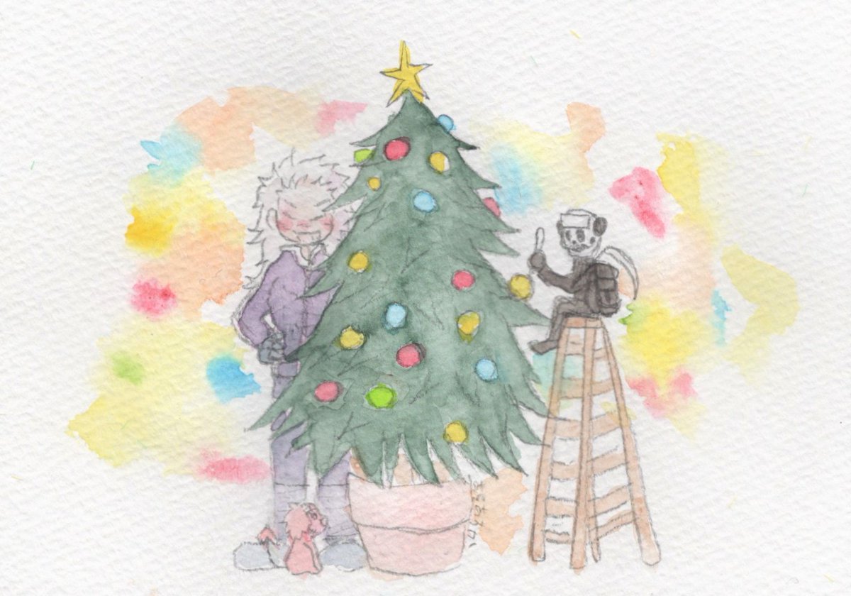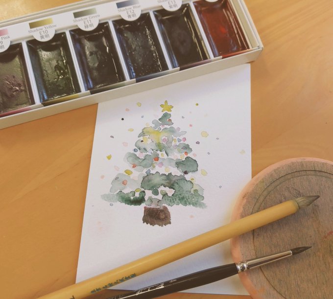 休憩時間落書き。 絵墨明で描いたツリー🎄