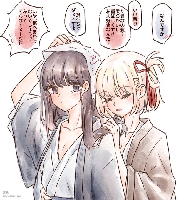 温泉旅行に行って彼女の髪の匂いを嗅ぐちさたきちさです #リコリコ #lycoris_recoil