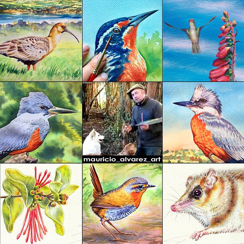 #artvsartist 2021 😊🐤🌿watercolor, acrylic, color pencil. Agradecido de poder ilustrar fauna para amig@s en pedidos y científic@s tb. Gracias a las fotos de mi amigo @fernandoborquez en aves. Monito del Monte foto base de Roberto Nespolo. Mi foto junto Huesillo y Snowie 🐶😊.