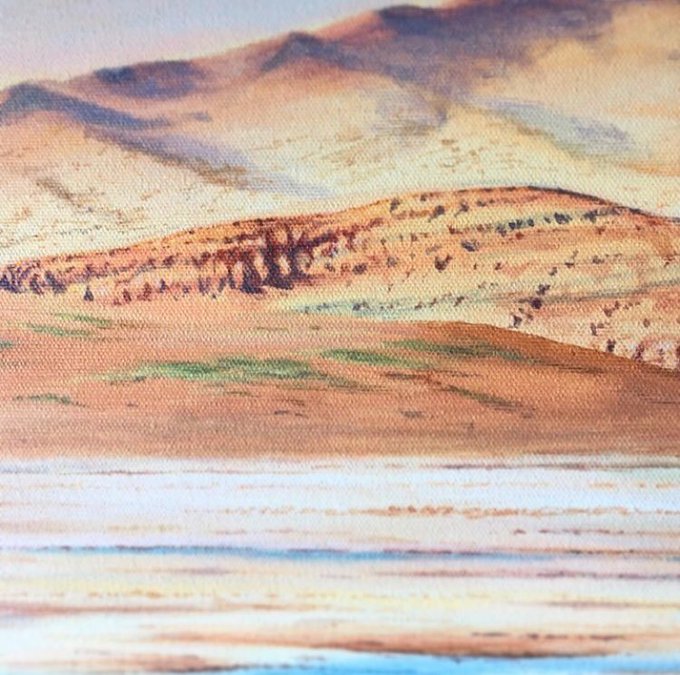 (acrylic paleoart landscape) Muy contento🦖😊 por el proceso de paleoarte en acrílico con boceto digital. Muy agradecido de Fernando Jaramillo por solicitarla. Es una interpretación artística de la form. Quebrada Monardes, Atacama. #paleontology #paleoart #chile #paleoarte