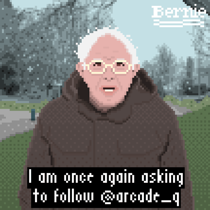 First one of the @BernieSanders triptych i made back in 2020. In this one he's helping me get new followers 😅 (thanks Bernie, for everything!) #bernie #berniesanders #feelthebern #videogames #pixelart #8bit #16bit #pixel #lofi #ドット絵