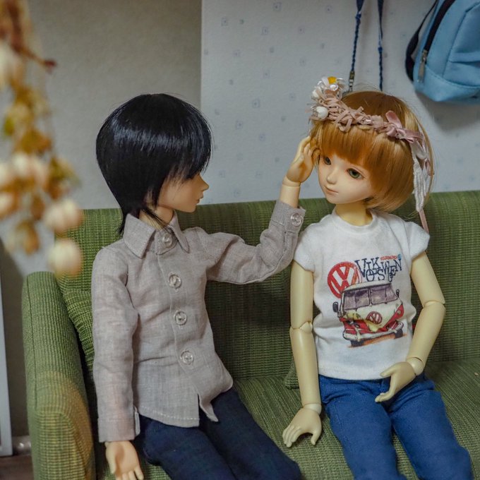 #今夜のドール撮影120分一本勝負 【たわむれる】 花かんむりで遊ぶ男子ズ。 #うちのTF #bluefairydoll #TFJerome #TFTommy #TF好きさんと繋がりたい #うちの子かわいい