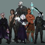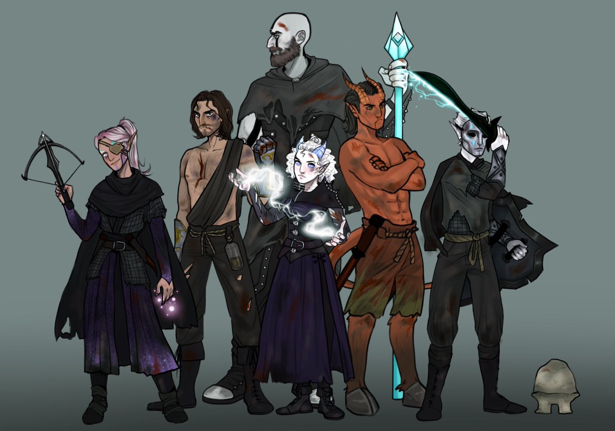 coloured sketch commission of my current OotA party for @OathOfMetal! love these little pretend people so much #dnd5e #dndart #ArtistOnTwitter