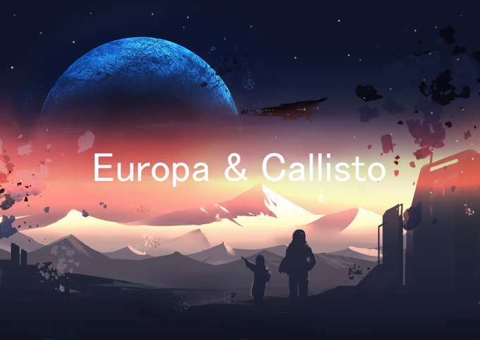 2 6 86日目の落書き~Europa & Callisto IG:instagram.com/arc.chen.9/ #100日チャレンジ 22/11/01 23:33
