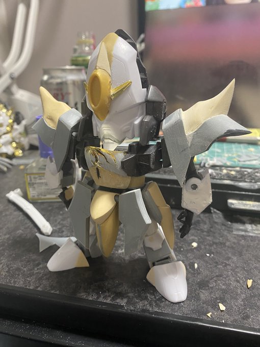 #俺SD作ってるぜ #ガンプラ #ガンプラ好きと繋がりたい #スペリオルドラゴン スペリオルドラゴンZ④ 正月休みも終わり少し空きましたが、足を改造。 後は腕を騎士ユニコーンのものに変更。