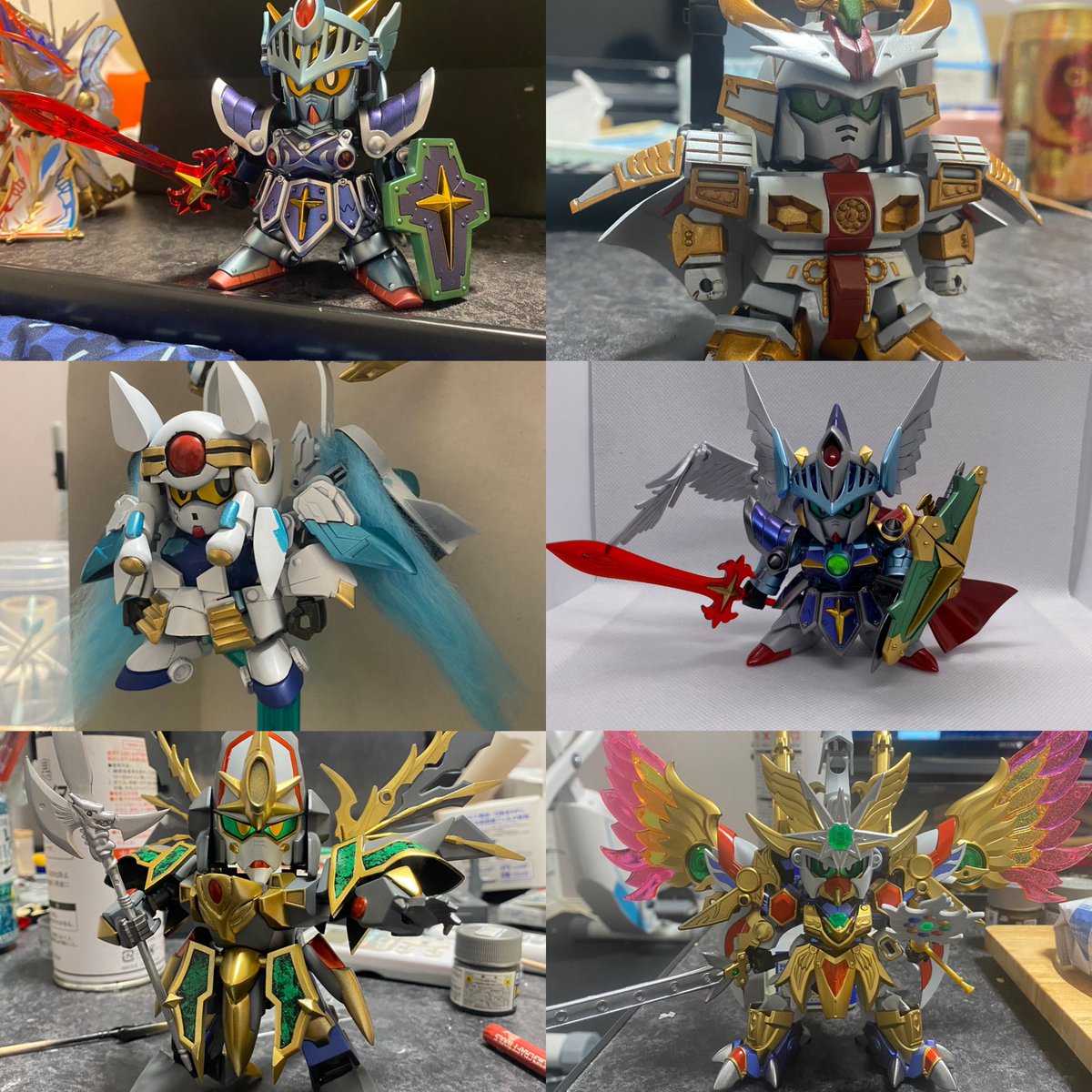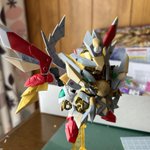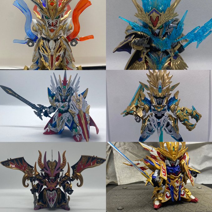 #俺SD作ってるぜ #ガンプラ #ガンプラ好きと繋がりたい スペリオルドラゴンZが進まない中、息抜きに去年ガンダムベースで買った白龍、青龍、赤龍とジャンクで買ったLGBB二代目大将軍でざっくり三龍いや太陽龍頑駄無を形に。