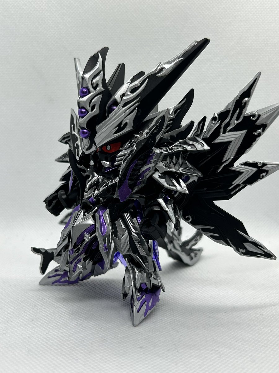 #俺SD作ってるぜ #ガンプラ #ガンプラ好きと繋がりたい ドミナントスペリオルダークネスドラゴン完成! 今回はマスキングゾルを多用してみたのですが、面積広いところはゾルの塗り残しがあったので、エングレービングの縁ぐらいに使うのが良さそうですね。