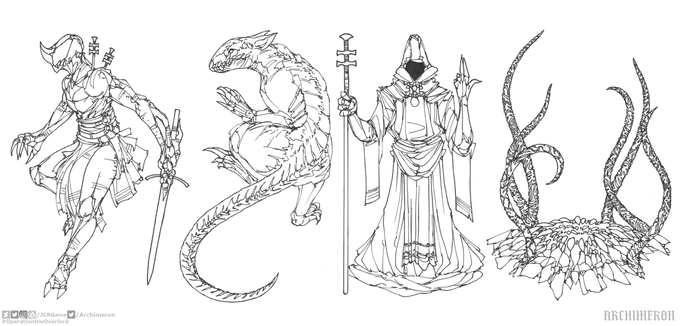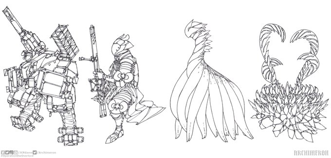 #Archimeron #Inktober #Inktober2020 - fifth set. 17-Storm. 18-Trap. 19-Dizzy. 20-Coral. #OperationOwOverlord #mech #armor #alien #mutant #monster #scifi #ink #sketch #drawing #anime #manga #conceptart #conceptober