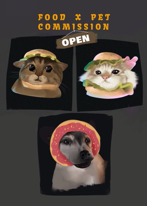 Food x Pet commission is now Open 👐 I do cute pet portraits and different species in affordable price just slide into my dm or send me an email 💥Opening 10 slots for this one ✉️ email : vanksap8@gmail.com ✉️Dm me on twitter for inquiries
