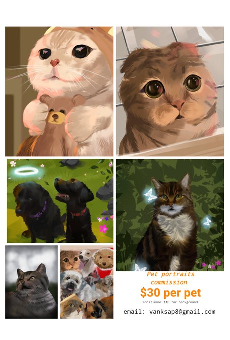 😺 🐶 Commissions Open😺 🐶 I'm opening my commission for pets, humans, and backgrounds to save up for my laptop that is essential for my architecture journey. Dm me or just email ✉️ (vanksap8@gmail.com) (❤️ and retweets are appreciated)