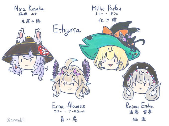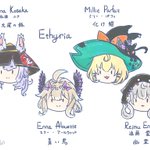全員共通でダークトーン入っているのメチャ良くね?????と思いつつ色塗りしていた ミリーの帽子はまじで難しい あと10人〜〜〜〜〜 #Ethyria #DrawKosaka #Palouette #DrawMillie #Reimural #エナーアート #Endoujin
