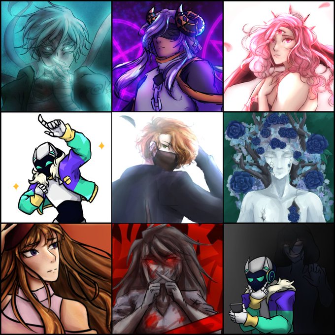 Reposting my old art vs artist thing except with a self portrait in the center instead of my actual face so I don't curse the internet with my existence again ✨ #artvsartist