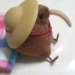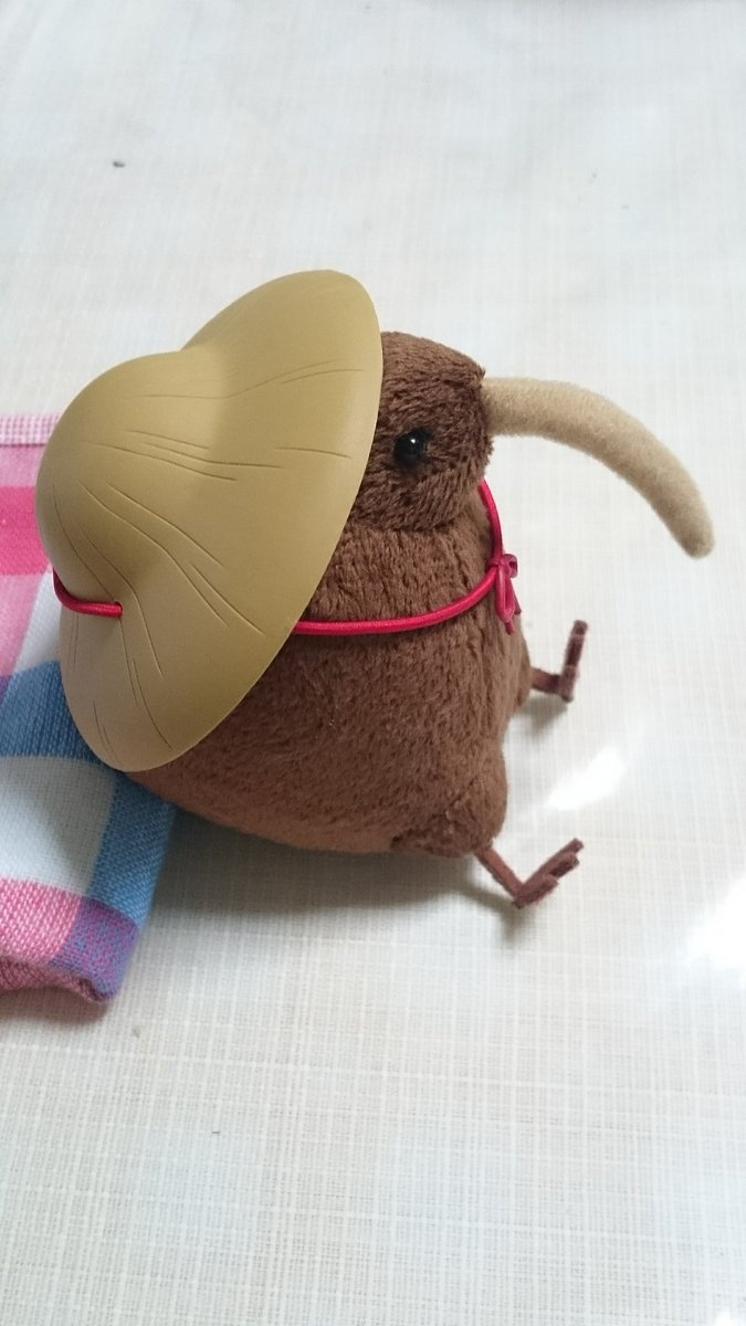 お小夜の笠を貸してもらったキーウィ