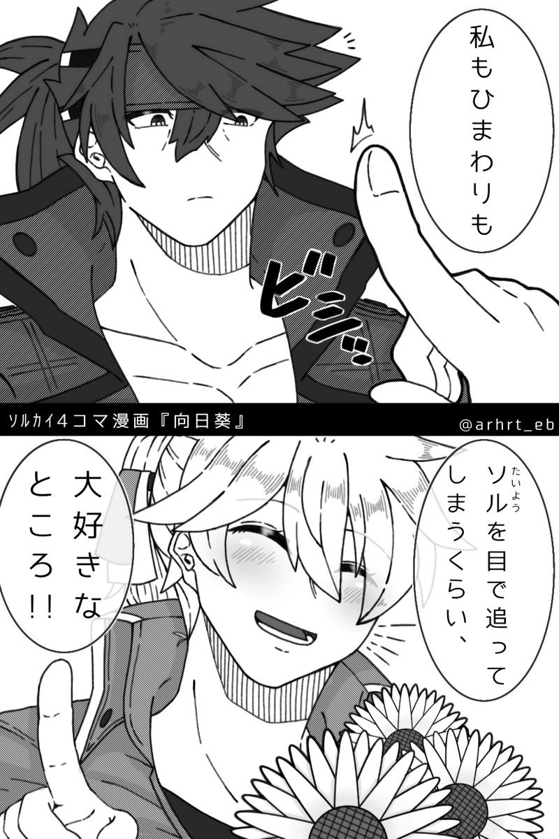 #ソルカイ強化月間ワンドロワンライ 4コマ漫画/お題『向日葵』