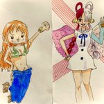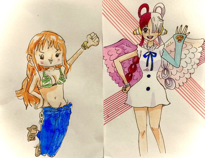 今日のイラストは娘と一緒に私も描きました!ナミとウタ。模写じゃなくて、娘のように自分だけの絵が描ける人がうらやましい。 #ワンピース #ウタ #ナミ #イラスト #アナログ #絵描きさんと繋がりたい