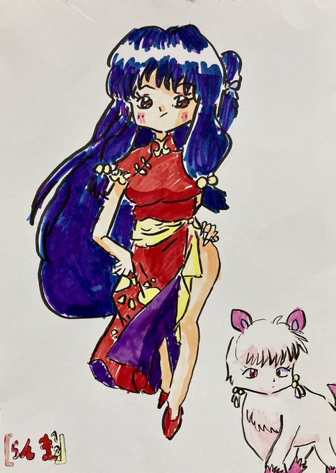 2 19 今日の娘のイラストは、らんま1/2のシャンプーちゃんです🍥❣️🐈 #らんま #シャンプー #イラスト #アナログ #6才の絵 #絵描きさんと繋がりたい 22/09/06 21:02
