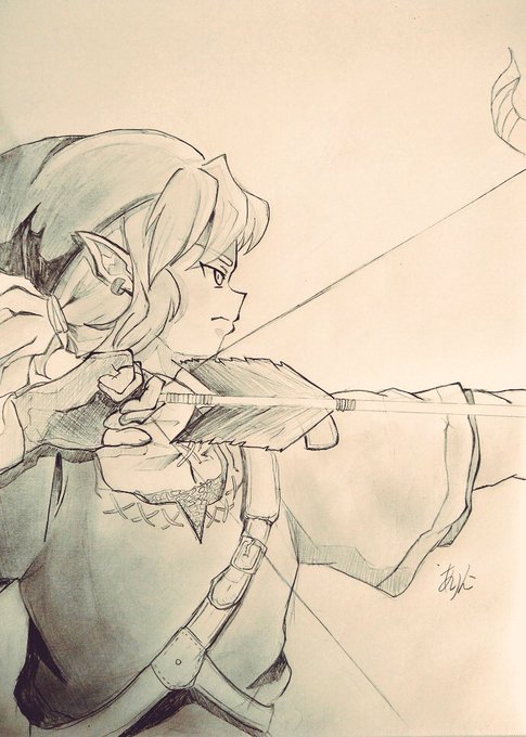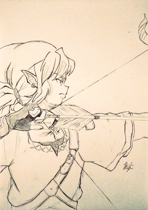 #rkgk #ゼルダの伝説 #リンク #絵描きさんと繋がりたい 色まで塗ってしまった……(色と言っていいのか?) 矢の持ち方格好いい✨