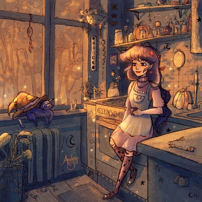 Cozy autumn kitchen 🍁🍂 What is something you love to cook in the fall? I hope you like this drawing, it took me a long time! #arttwt #inktober #digitalart #witchtober
