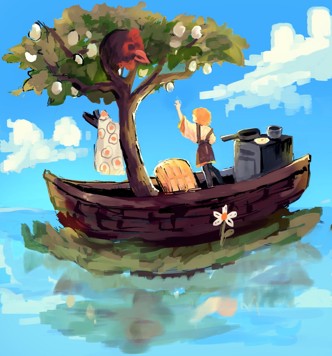 What is that tree on the submarine? 潜水艦に乗ってる木はなんでしょうか? #illustration #art #drawing #egg #chicken #boat #Submarine #イラスト #木 #潜水艦 #卵 #玉子