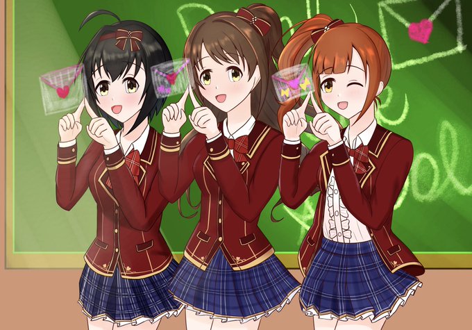 ピンクチェックスクールで自撮り風に #MOTTOアガるコーデ #島村卯月 #小日向美穂 #五十嵐響子
