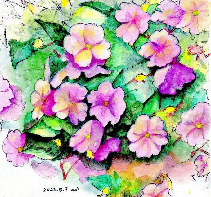 0 19 あづみの公園で咲いていた花を描きました🌸 今日もさちあれ♪ #水彩画 #水彩 #絵画 #絵 #水彩絵の具 #azumino_HH 22/08/09 18:50