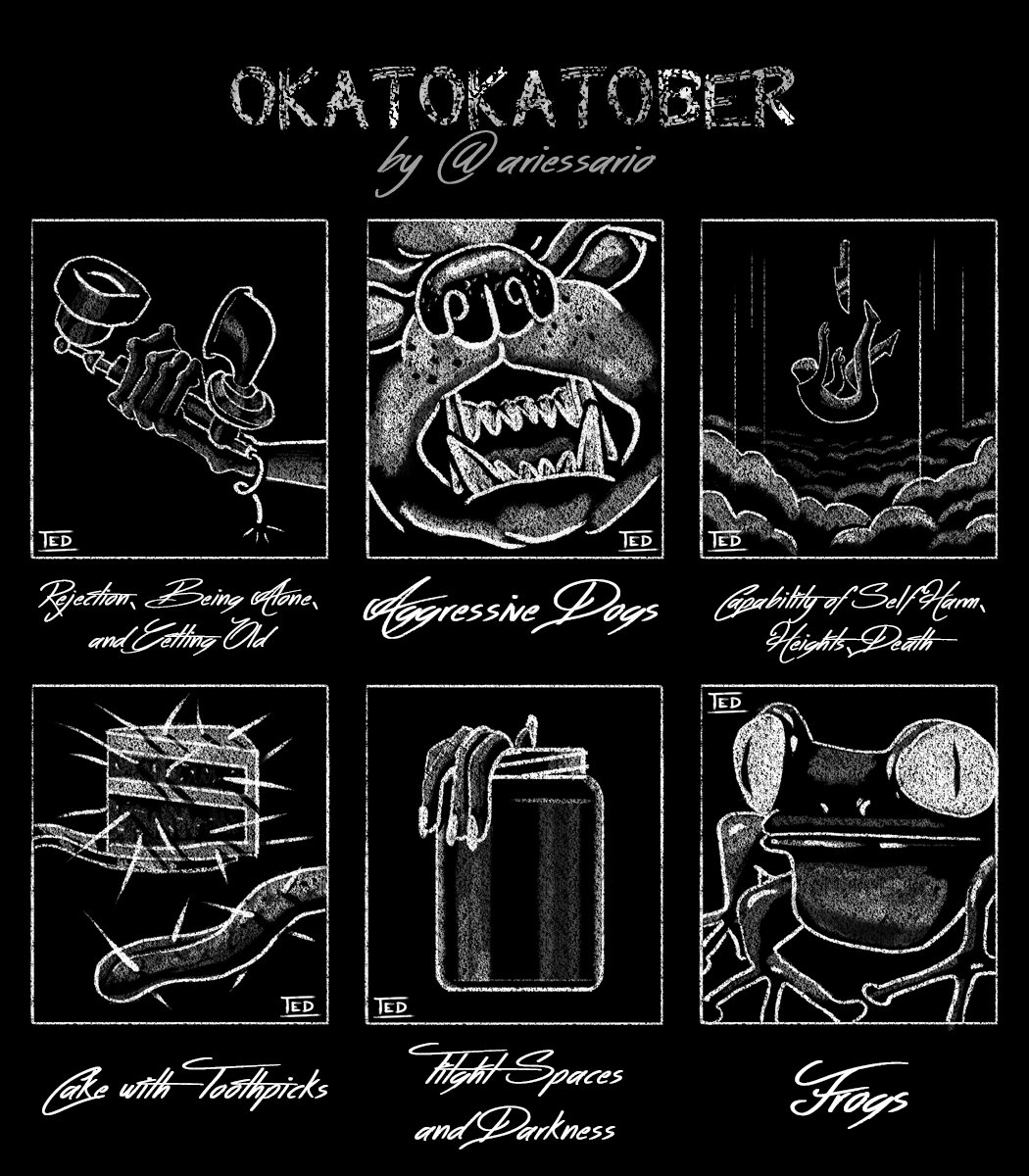 Here's my late take on @dodongshen's #OKATOKATober. 💀💀💀 (𝗔 𝗧𝗛𝗥𝗘𝗔𝗗) Since kaunti lang nag-comment, I merged some fears into one para walang ma-left out. Thank you sa support. #ArtPH 🖤🤍