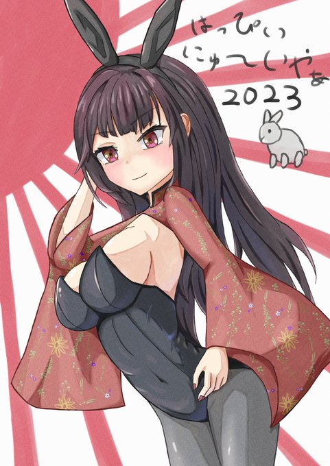 明けましておめでとうございます、今年もよろしくお願いします 兎年ということで安易なバニィーガールさん #年賀状2023 #お正月イラスト