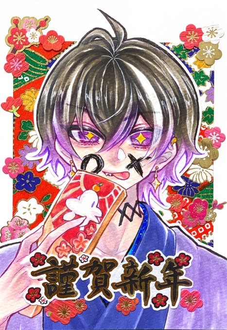 年賀状並びにイメチェン配信めちゃんこ感謝ッ🐇✨ #夜百絵巻