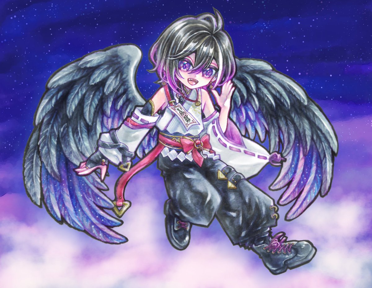 Skebにてみつまたすいく様(#su1_mitsumata )に新衣装すがらくん羽根有verをご依頼させて頂きましたッ🙌✨ 天元突破な可愛さなので全人類見てください˗ˋˏ ♡ ˎˊ˗ #夜百絵巻