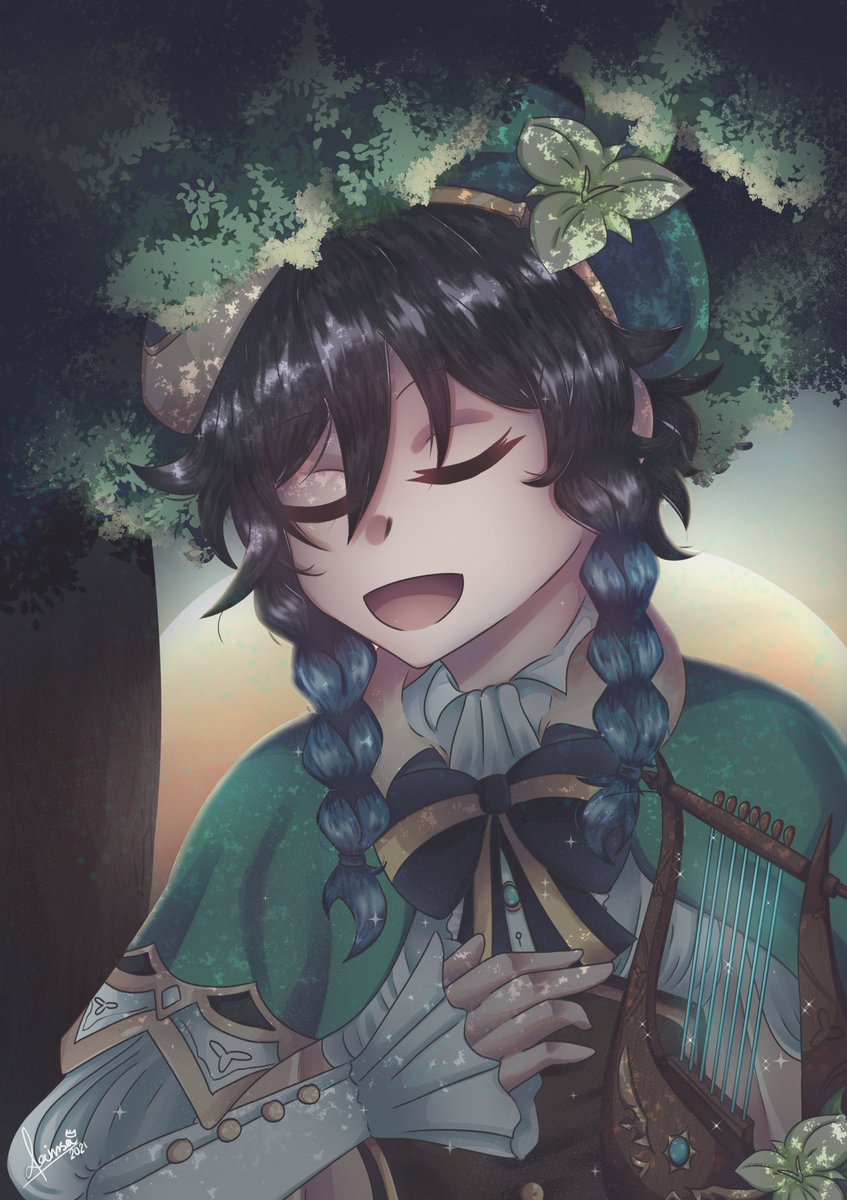 「風に君の髪が吹かれたら、それは君を思う僕だ」 HBD Venti!!~ 🎉 Le tengo bastante cariño a Venti por ser mi primer pj 5 estrellas 💚 #原神 #原神イラスト #イラスト #ウェンティ #ウェンティ生誕祭2021 #原神_キャラ生誕祭 #GenshinImpact #venti #digitalart #illustration #fanart #drawing