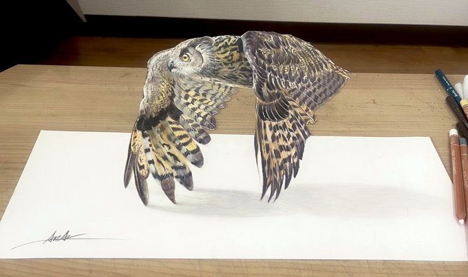 1145 10.1K フクロウ描きました🦉 本物に見えたら嬉しい...!! 23/07/29 18:21