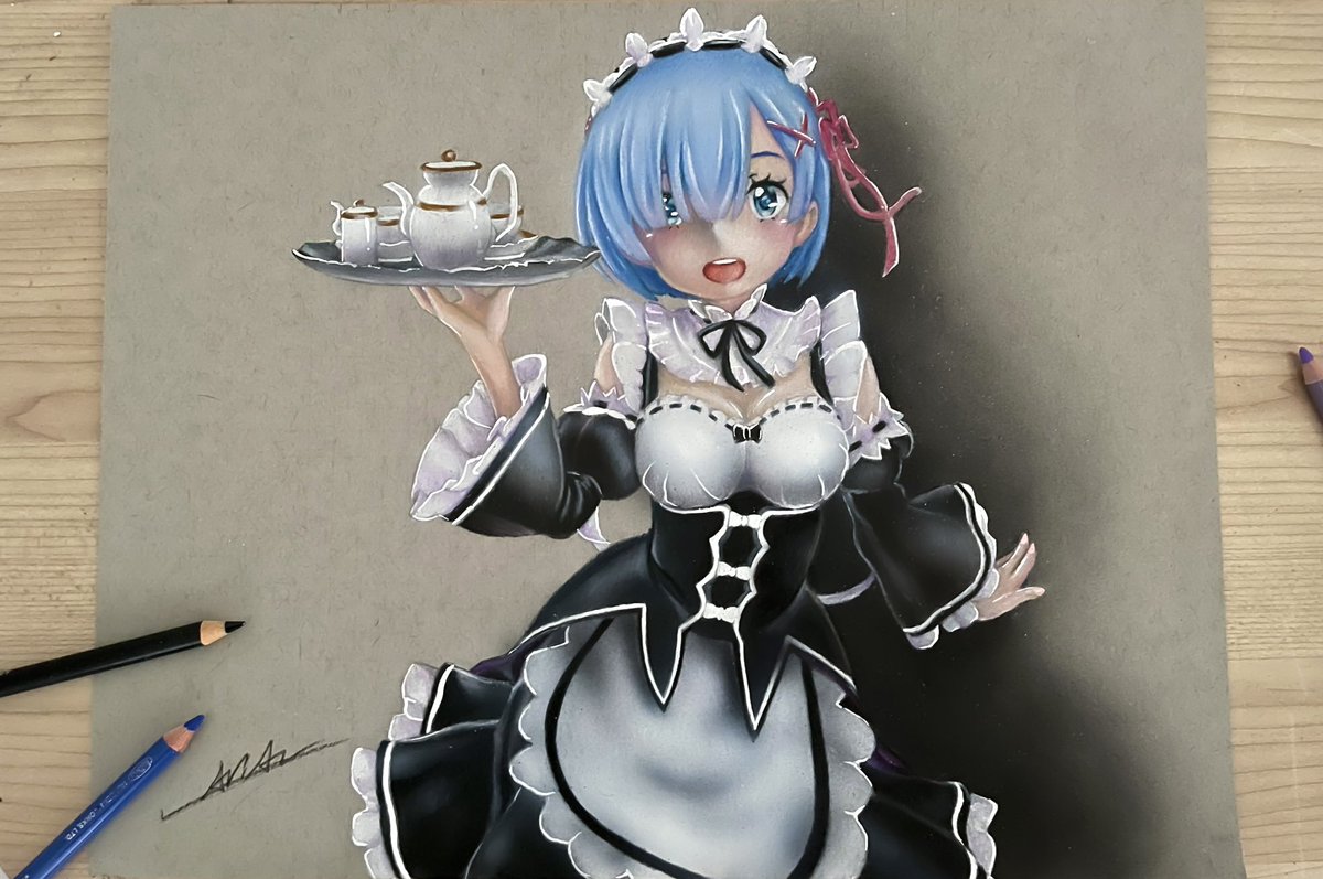 色鉛筆で描いたレムの絵☕️