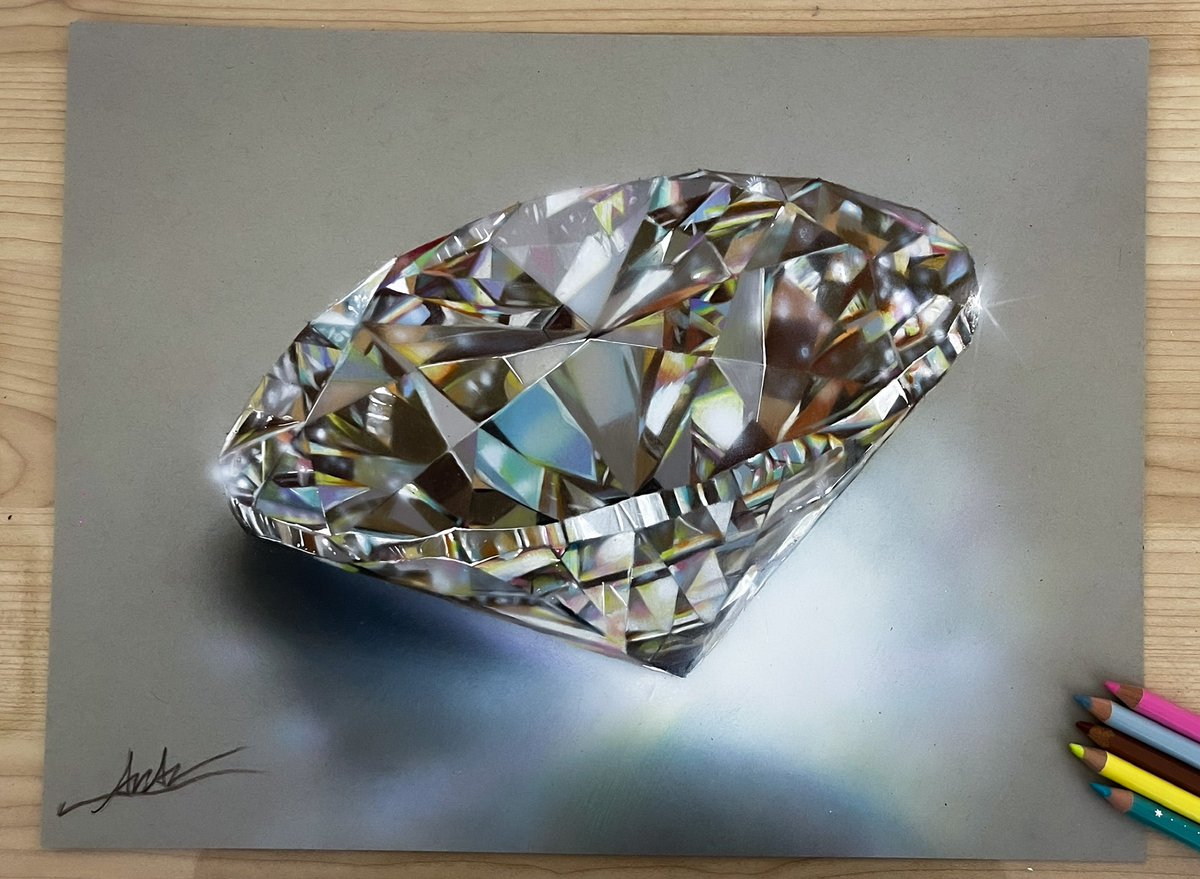 色鉛筆で描いたダイヤモンドの絵✏️