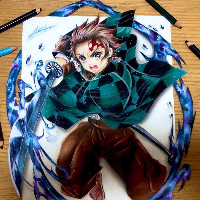 3年前に色鉛筆で描いた炭治郎の絵 も見て欲しい...!!!