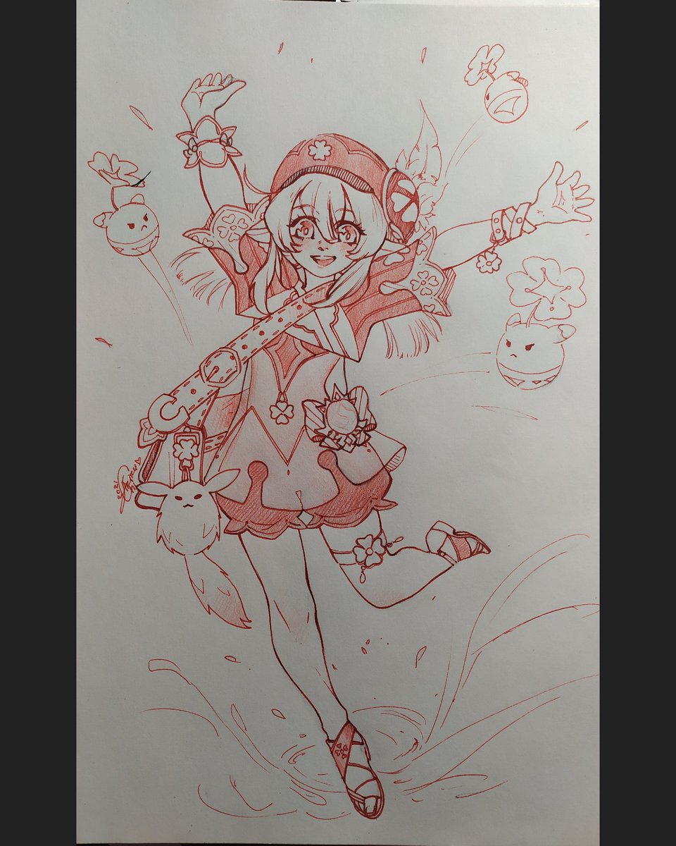 Hello guys!!!! Wanna show you something cute today;) Summer design for Klee!!! I really wanna make more vocation clothe for this little girl..and..I like how it turns😉 hope you will like it too;)) #genshinimpact #genshinimpactfanart #originalclothing #redisign #klee #kleefanart