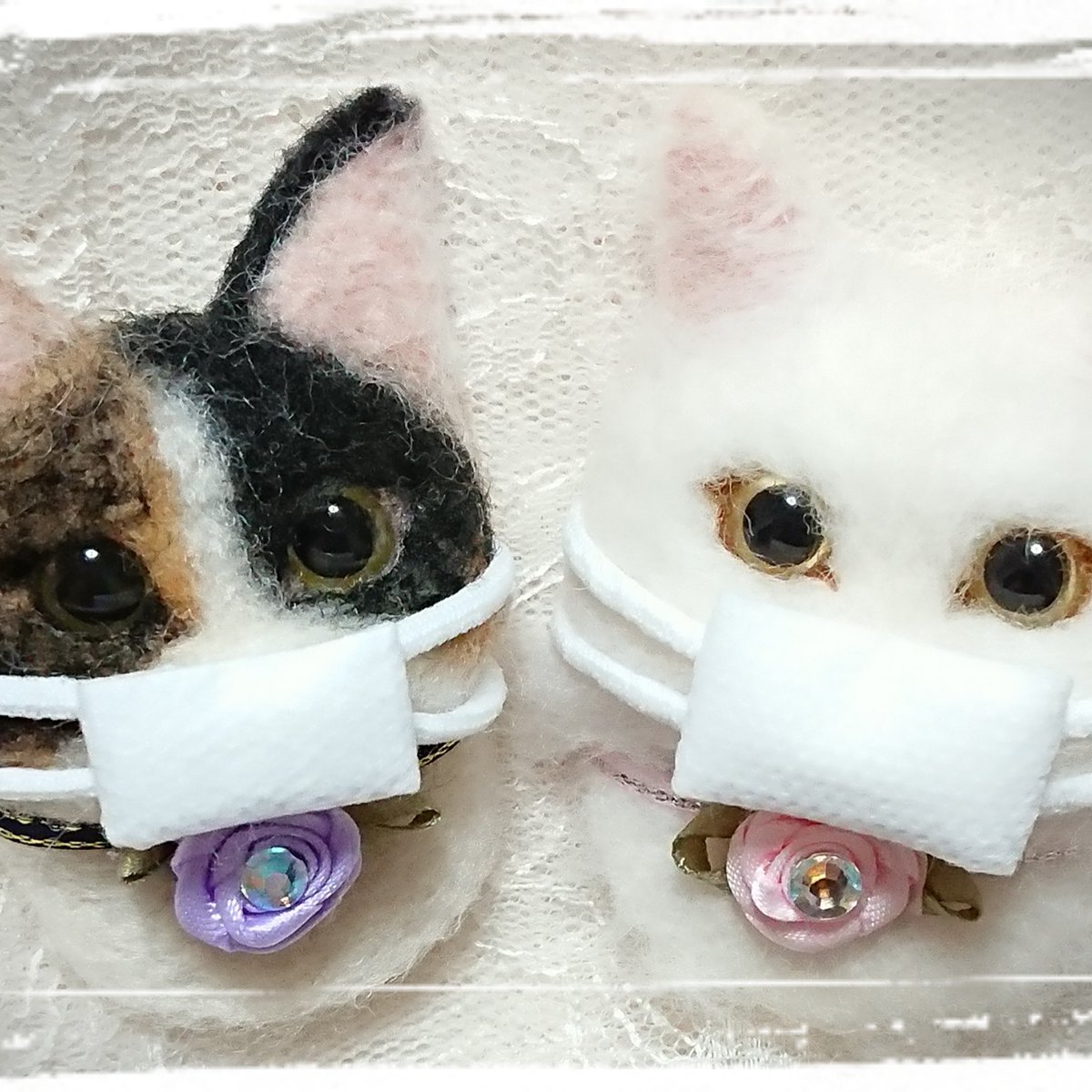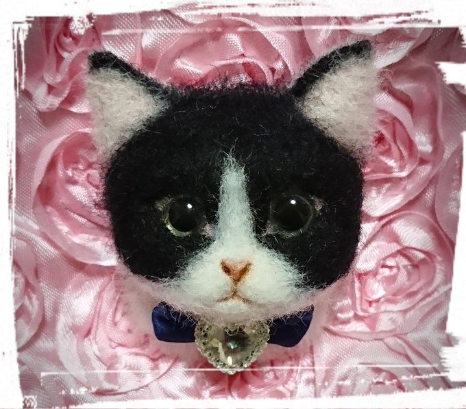 #羊毛フェルト #ブローチ #猫 刈にゃんレスキュー様に、マスク猫ちゃんブローチを寄付用として作成しました。 今後も保護猫の活動されている団体様や、動物の(人間含む)医療従事者さまから直接ご連絡あれば寄付できたらと思います(^^)応援しております!m(__)m